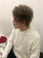 メンズダブルカラー。ブリーチ後にブルーベージュのカラーをオン。残ってるパーマを活かして動きある感じに。透明感あるハイトーンカラー、人気です。