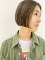ぱっつんボブのやや前下がりナチュラルボブカラーはハイライトをたっぷり入れてグリーンアッシュ系に