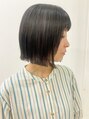 ぱっつんと切った前下がりストレートボブうちに入らないようにストレートアイロンでやや外ハネにしたデザインです。