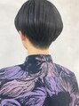 センターパートのシンプルハンサムショート。毛先を自然に曲げて柔らかさを出しつつ、黒髪でモードな雰囲気も出したカッコイイスタイル。