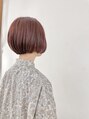 可愛いピンクヘッドの色味のミニボブ♪暖色系はツヤ感たっぷりになります♪長かった前髪も切ってシースルーバングに♪