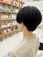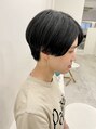パツっとしたラインがカッコいい雰囲気のハンサムショート。更に青みある黒で艶やかに。首元は刈り上げ手前でナチュラルに仕上げてます。耳にかけてもおろしても楽しめるショートスタイル♪