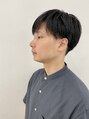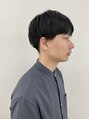 前髪長めで流す感じにセットもできて、黒髪でシンプルなマッシュショート。横はナチュラルな2ブロック、後ろは短く刈り上げグラデーション。首元すっきりするとシャツとの似合わせも良いてすね(^-^)