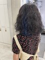 くせ毛をいかしたミディアムヘア♪おろしたら見えて、まとめたら隠すこともできる部分に計算してネイビーカラーを♪コントラストが効いて可愛いです♪