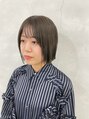 パツンとラインが可愛いミニボブヘア♪乾かしたら自然と内に入るようカットしているので、扱いも楽ちんです♪カラーは透明感たっぷりなグレージュカラーに♪