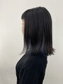 インナーカラーをブリーチして、上から重ねたカラーはネイビー。パープルよりのネイビーカラーで、色落ちで淡いパープルになってくれるのが狙い目です。ベースカラーの黒髪で引き立ってて、冬らしい可愛いミディアムスタイル。