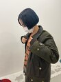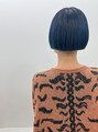 ぱっつんミニボブにトリプルカラーでネイビーをいれたシンプルスタイルしっかりトーンアップしたベースに深みのあるネイビーカラーがポイントです。