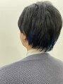 首元のインナーをブリーチして、上からネイビーカラーに。黒髪との相性もバッチリで、サイドは2ブロックにしてるからメリハリのあるマッシュウルフ。