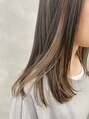 インナーはブロックで、表は束感が出るようなハイライトをブリーチで脱色し、そこから全体のカラーと共に色をかぶせてます。インナーは明るめのミルクティーベージュのカラーをポイントにしてます。