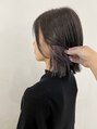 切りっぱなしボブのパープルのインナーカラーが入った可愛いヘア♪全体は透け感のあるブルージュに♪