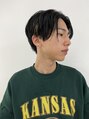 パーマのゆるくあたったセンターパートのマッシュパーマスタイルにワンポイントデザインカラーをいれた 遊びごころをいれたマッシュスタイルです。