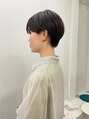 襟足すっきりマッシュショート♪前髪は目にギリギリかからない長さで下ろすこともセンターパートにすることも可能な長さに♪カラーは暗めの透明感がでる感じで落ち着いた雰囲気にしてます!