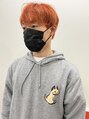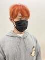 ペールトーンオレンジカラーのマッシュスタイル。ブリーチ×2カラー×1のトリプルカラーでハイトーンでビビッドオレンジ。