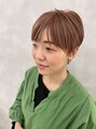 ダブルカラーでブリーチでがっつりハイトーンに。オレンジベージュカラーで柔らかい雰囲気に仕上げてます♪夏に向けて明るいカラーを楽しめるように。。。ショートヘア満喫スタイルです!!