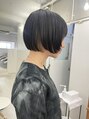 顔まわりレイヤーが可愛いミニボブヘア♪前髪は重ためパッツンでモードな印象に。元々入っていたインナーカラーがチラ見えしてまた可愛いです!