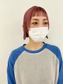 ハイトーンピンクのオン眉×顔まわりデザインぱつっとボブ全体よラインをぱつっとしたカットラインにしました。