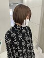 コロンと可愛いミニボブヘア。カラーは全体明るく夏仕様に♪ブリーチなしで限界の明るさを繰り返して、赤味を削ったくすみベージュ。