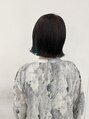 ぱつっとボブにインナーブルーをいれたデザインぱつっとボブベースはブルーと相性のいいパープルアッシュカラー