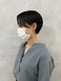 前髪長め7:3パートのマッシュショート。しっかりウエット仕上げでタイトにして大人っぽい雰囲気をだしてます。