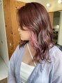 全体ピンクラベンダーの色味にインナーはペールピンクの可愛いカラー。インナーは2~3回ブリーチしたベースだからこそできるペールトーンの色味です。
