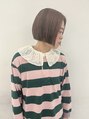 センターパートぱつっとボブにダブルカラーでパープルベージュにしたハイトーンカラーボブ。シンプルなスタイルはしっかりウエットにして艶をだしたのがポイント