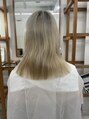 ブリーチ何度も繰り返し、毛先はホワイトベージュでいい感じ。ただ、毛先はハイダメージなので今回はカットでメンテナンス。毛先に厚みが出てキレイにまとまりました。