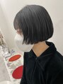 艶がある黒髪ヘアのミニボフ。やや前上がりのカットラインにしてるのがポイント。重たすぎず少し軽くして馴染みやすくしてます。首元がすっきりでシルエットもキレイに見えますね(^-^)