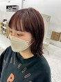 深みあるオレンジカラー。少し赤みを強めに入れてるので落ち着いた風にも見えるけど、彩度のインパクトはあります。重めなワイドバングとボブとの相性も可愛いスタイル。