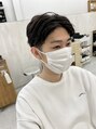 横は2ブロック、後ろは刈り上げグラデーション。毛先の流れがしっかり出て、前髪の根元が立ち上がるようなしっかりめのパーマ。かき上げやすいようにカットしてます。