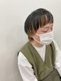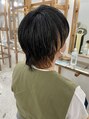 マッシュラインで襟足長めのウルフスタイル。黒髪でのアクセントに片サイドにデザインカラーで遊び感をプラス。重めのラインだけど、量を調整してふんわり仕上げてます。