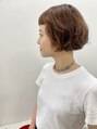 前髪と表面の根元から中間にかけてのクセを酸性ストレートパーマでおさまり良く。毛先のクセは生かしてくしゃっとしたボブで動きあるスタイルに。前髪はオン眉で決めてます!!