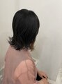 顔まわりに動きあるミディアムスタイル。インナーカラーで耳周りにハイライトを入れてるのがデザインポイントです。クセを生かすこともできるので楽にセットできます。