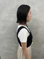 肩につかないぱつっとボブ前髪ぱ長めで頬骨あたりに落ちるセンターヒメカット風ストレートラインをきれいにだしつつ、前髪顔まわりに動きをだしたスタイル
