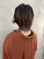 ショートから伸ばしたウルフボブをそのまま活かして大きめパーマをかけた雰囲気のあるウルフスタイル襟足は外はねにしつつ、全体をニュアンスパーマ程度の大きめカールで動きをつけてます