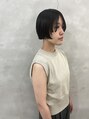 襟足ギリギリのぱつっとボブに前髪を伸ばしたセンターパートスタイル。大人っぽくウエットでタイトに仕上げてます
