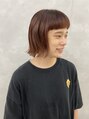 ブリーチ無しで赤系カラーで秋らしく。前髪は短めで、全体的にクセを生かしたボブヘア。束感出やすくカットしてます♪