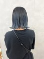 肩につくくらいの毛先トリプルカラーのデザインカラー毛先はアイスブルーを入れたデザインカラーは黒髪との相性のいいクールなカラー