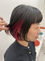 重すぎないぐらいのぱっつんボブに、耳周りにアクセサリー感覚でピンクカラーをプラス。耳にかけたり動いた時にチラリと見えるのが可愛いスタイル♪