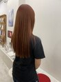 全体ブリーチ+オンカラーでオレンジ色に艶が出て秋の雰囲気にもぴったり。前髪はオン眉らいんでお顔まわりはレイヤーで動き出るように!!