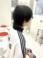 襟足長めのマッシュウルフヘア。横は2ブロックでおさまりよくすっきりカットしてます。目と耳が隠れるぐらいのマッシュで丸みあるシルエットで、黒髪との相性も良いです。