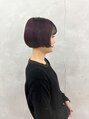 襟足ぎりぎりのコンパクトないミニボブハイトーンベースからのトーンダウンカラーのため、1回のカラーで透明感ある紫が鮮明に見えてるカラースタイルです