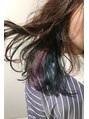 インナーに遊びを加えたデザインカラーです。全体は赤みのないアッシュベージュに、ピンク、バイオレット、ネイビーと三色入っています。他とは違うカラーをしたい方。オススメです。