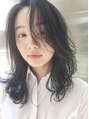 黒髮、直毛の方特にオススメです。中間から毛先にかけて大きめにパーマをかけています。暗くても重く見えないように、全体にレイヤーを入れて柔らかい印象に。