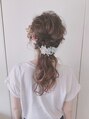 ゆるふわダウンスタイルにペールカラーのお花を散らしました。プリザーブドフラワーのヘッドアクセサリーオーダー承っています。