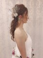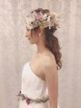 ダウンスタイルに沢山のお花とオーガンジーのリボンを合わせました♪ガーデン挙式や披露宴にオススメのアレンジです。