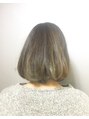 何度かハイライトを繰り返し、もともとアッシュ系になりにくい地毛をくすみ感のあるカラーにしていきました。アイロンで巻けば、透け感がいい感じに出るのでオススメです!