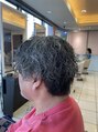 白髪にツイストパーマをかけることでワイルド感を出しました!セット方法はウェット状態でワックスを揉み込みコールドパーマを生かしたスタイリングになっています。