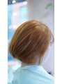 全体にハイライトブリーチを。その後、イエローベージュをオンカラー。カッとは丸みのあるミニボブ。ポイントブリーチ、ダブルカラー、インナーカラーも効果的。 酸熱ストレート&酸熱トリートメントで髪質改善もありかも!