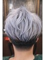 髪の表面のパネルのみブリーチしてシルバーをかぶせました。ブリーチの抜け具合や、お客様のカラー履歴によってお時間仕上がり料金変わります。写真のお客様はカット&ブリーチ&トナーで約2時間です。