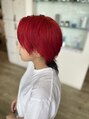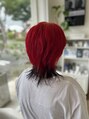 ブリーチありのお客様☆ビビッドなレッドをしっかりと発色させて、個性を引き立てるウルフスタイル。襟足にはダークトーンを効かせて、立体感とアクセントをプラス◎